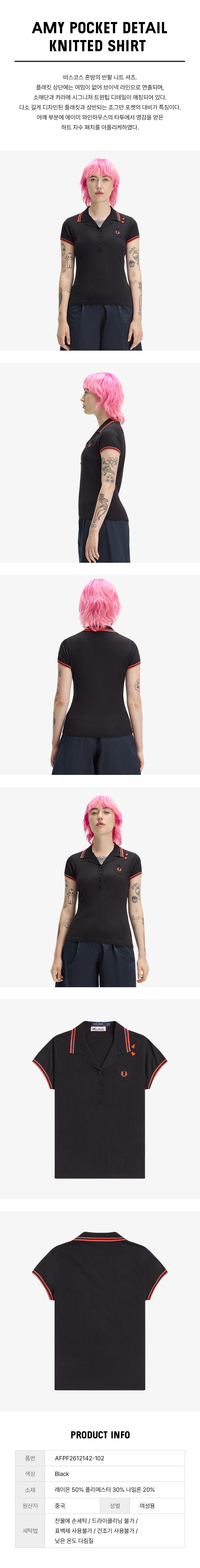 [Amy Winehouse] 포켓 디테일 니트 셔츠 - 블랙/화이트 AFPF2612142-102