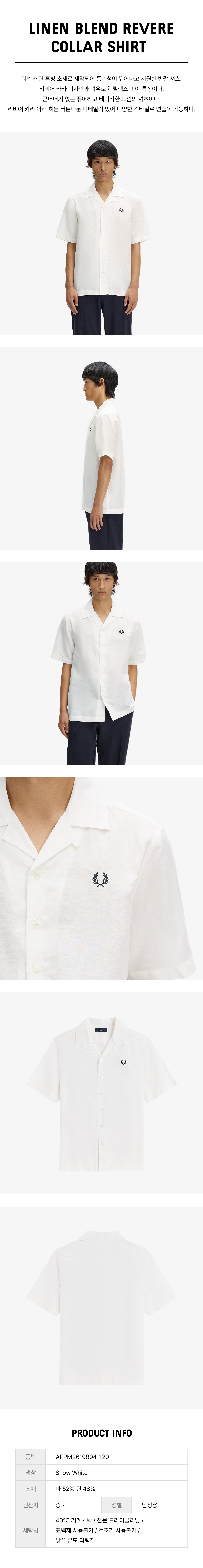 [Sharp] 리넨 블렌드 리비어 칼라 셔츠 - 스노우 화이트 AFPM2619894-129