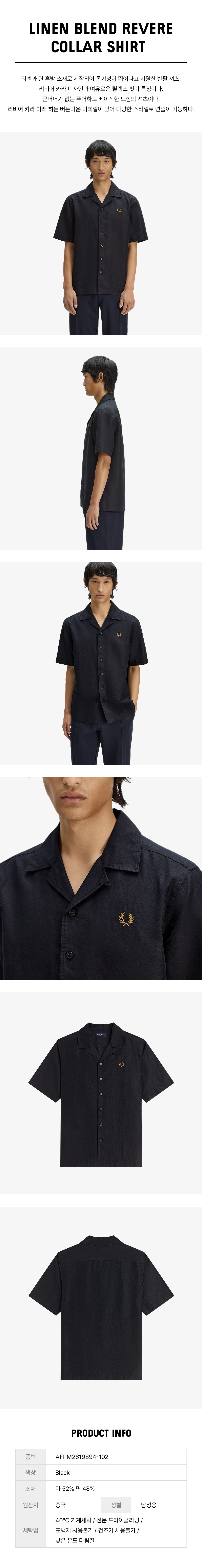 [Sharp] 리넨 블렌드 리비어 칼라 셔츠 - 블랙 AFPM2619894-102