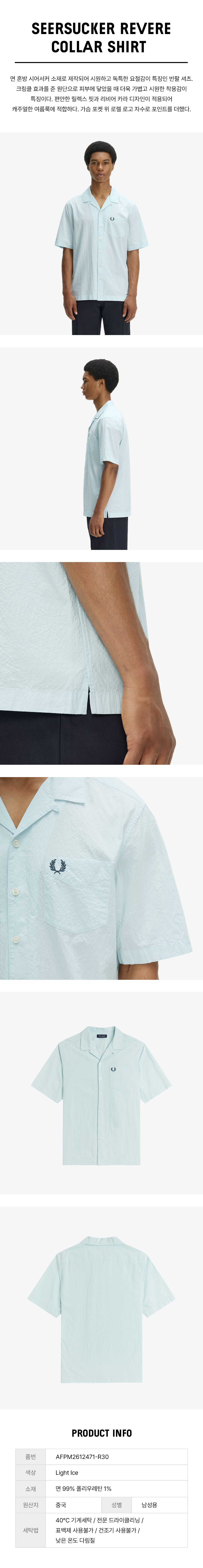 [Sharp] 시어서커 리비어 칼라 셔츠 - 라이트아이스 AFPM2612471-R30