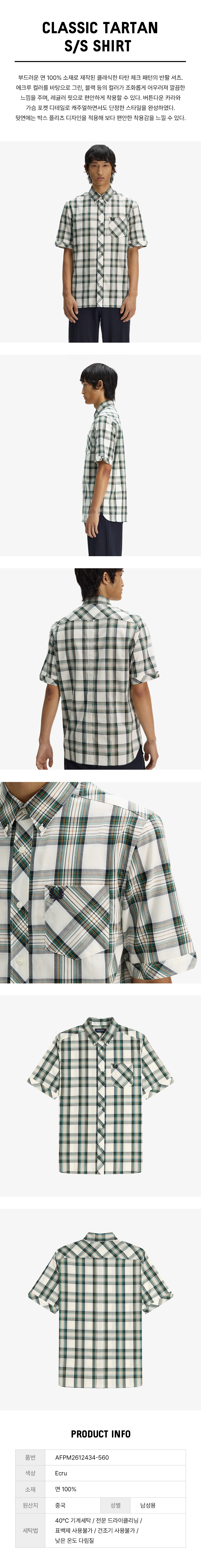 [Sharp] 클래식 타탄 숏 슬리브 셔츠 - 에크루 AFPM2612434-560