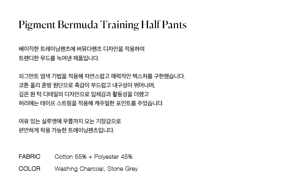 피그먼트 버뮤다 트레이닝 하프 팬츠 WASHING CHARCOAL