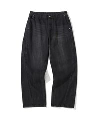 커브드 와이드 데님 팬츠 WASHING BLACK