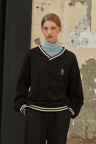 V-NECK OVER FIT SWEATSHIRT_BLACK