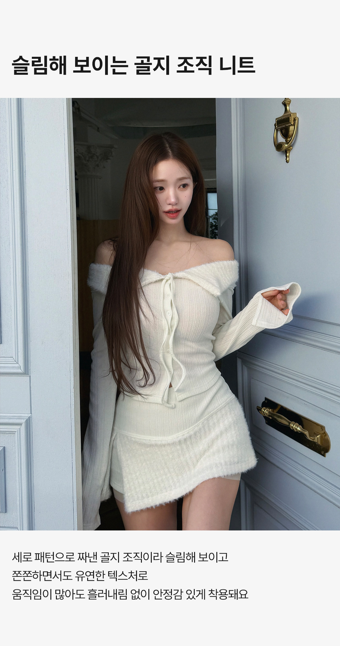 - 니트 소재 특성상 미지근한 물에 울샴프로 손빨래 하여 주십시오.