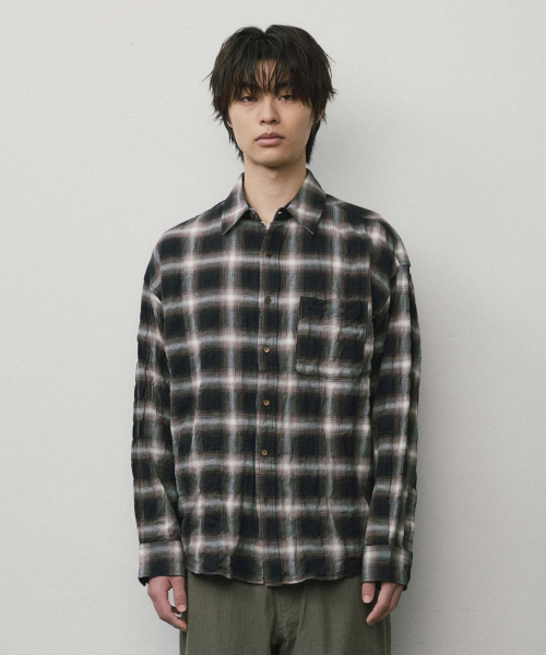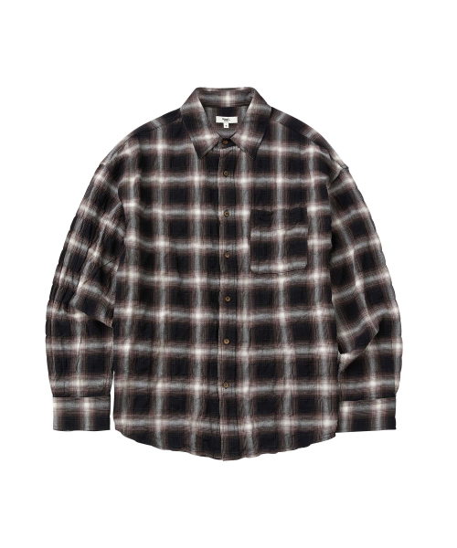 크리즈 링클 옴브레 체크 셔츠_BLACK