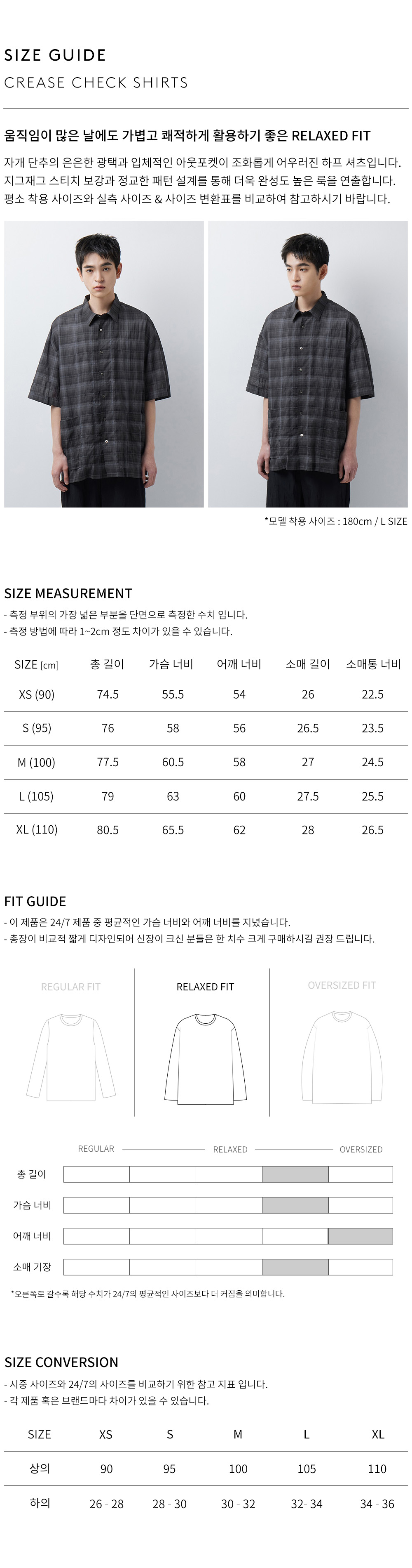 모델 착용 사이즈 : 180cm / L size