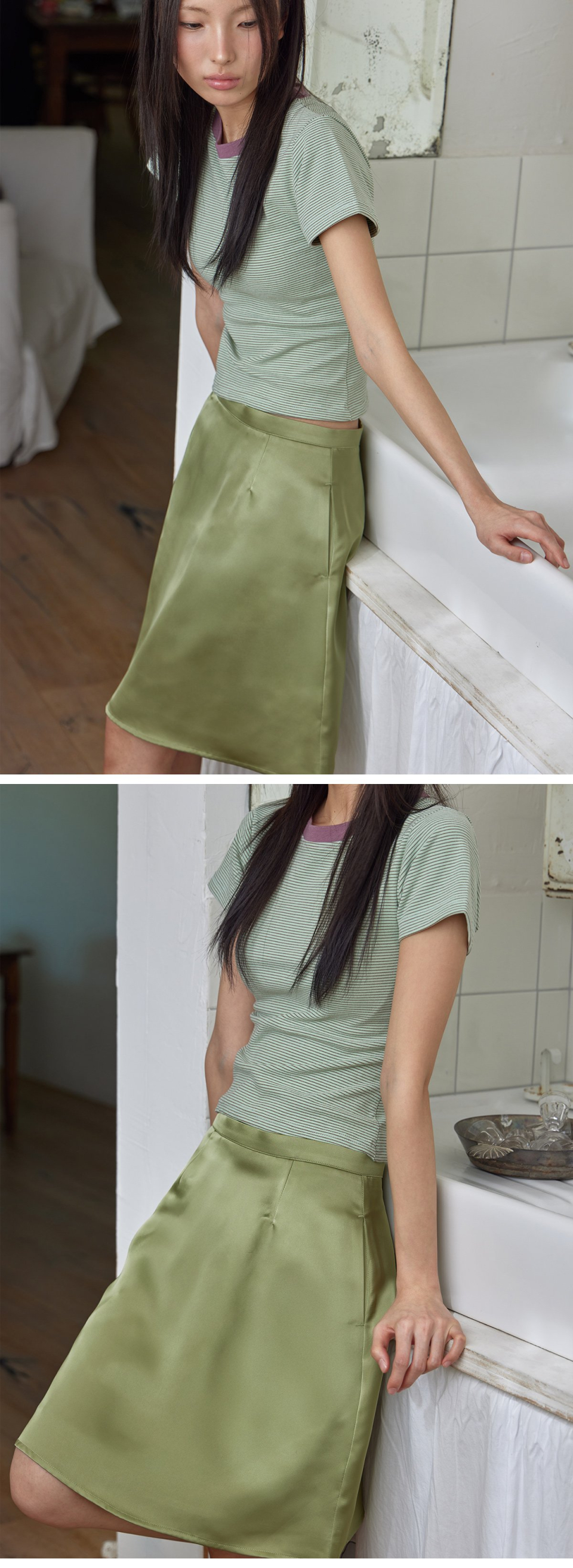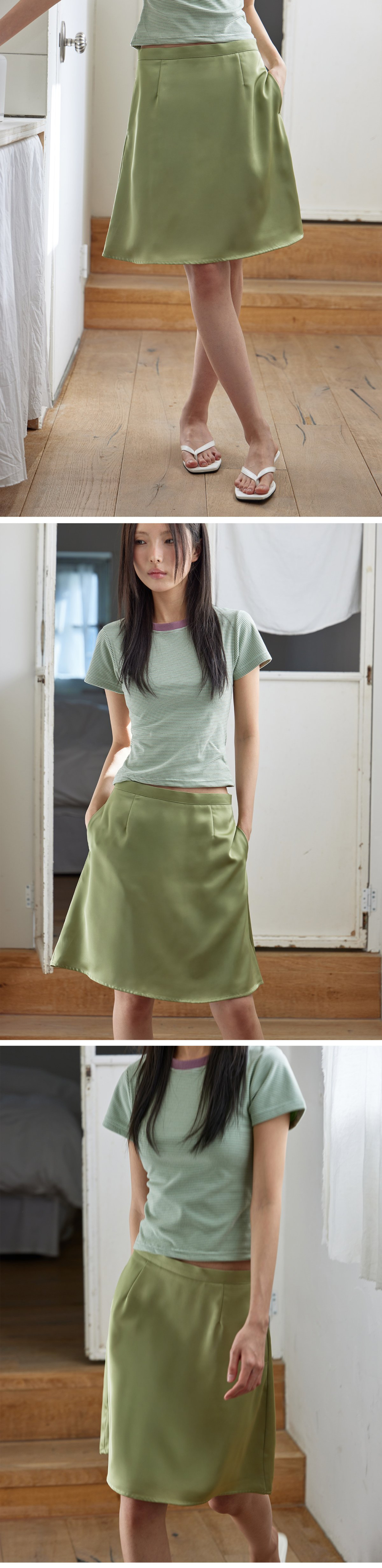 Silky Satin Midi Skirt, OLIVE