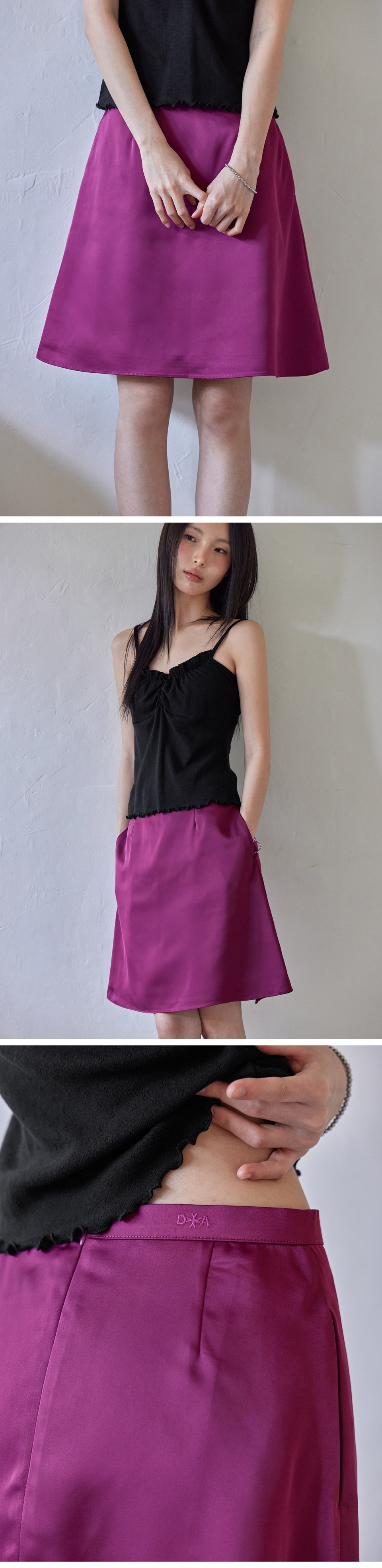 Silky Satin Midi Skirt, PURPLE