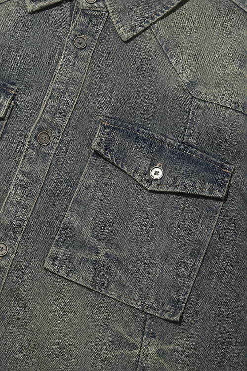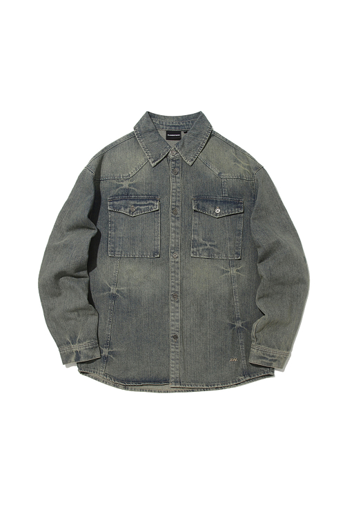 도밍고 워싱 중청 데님 셔츠 D블루 ANA1YE02ADB