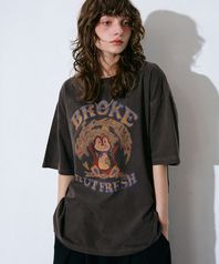 도넛 펭귄 피그먼트 반팔 티셔츠 브라운