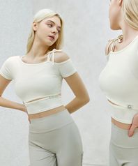엘플렉스 Rib 원 숄더 컷 아웃 크롭탑