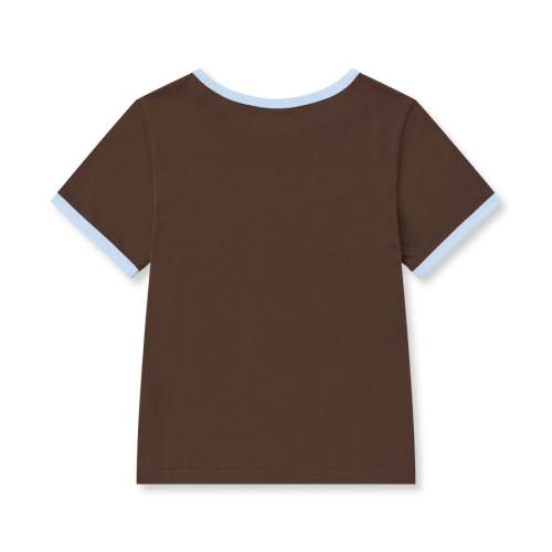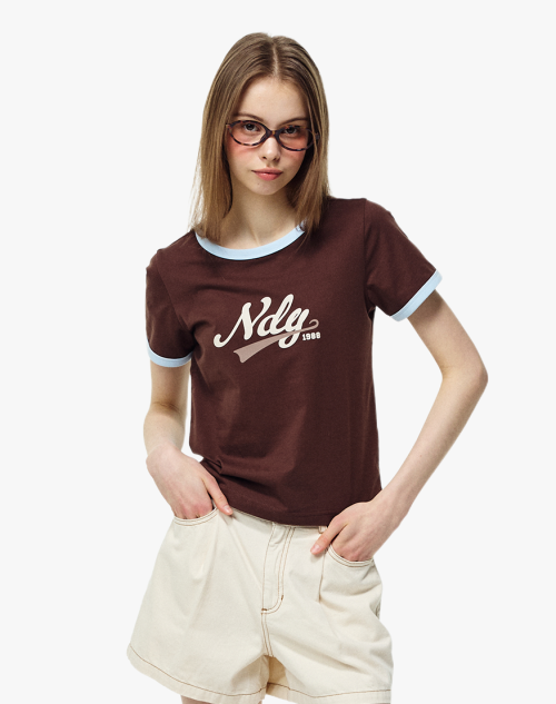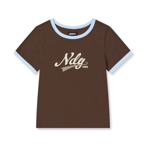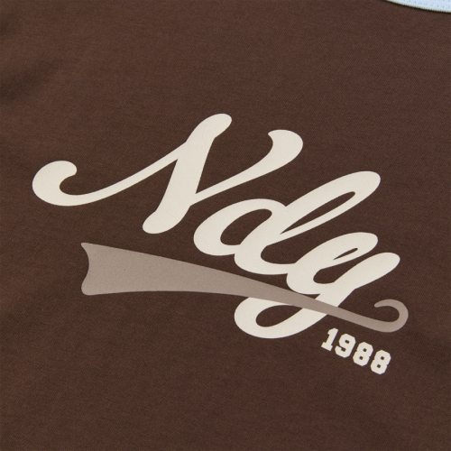 바시티 로고 링거 반팔 티셔츠 브라운