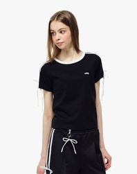 리본 타이 반팔 티셔츠 블랙
