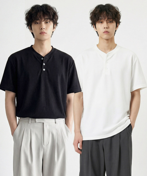 헨리넥버튼 베이직 반팔티셔츠 3COLOR