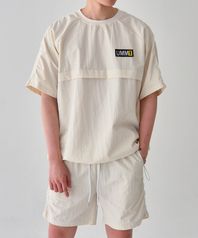 남자 라인포인트 티셔츠 반바지세트 크림