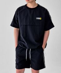 남자 라인포인트 티셔츠 반바지세트 블랙