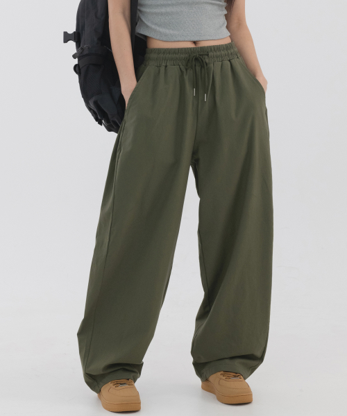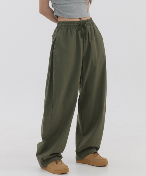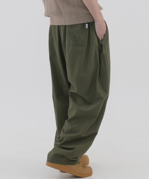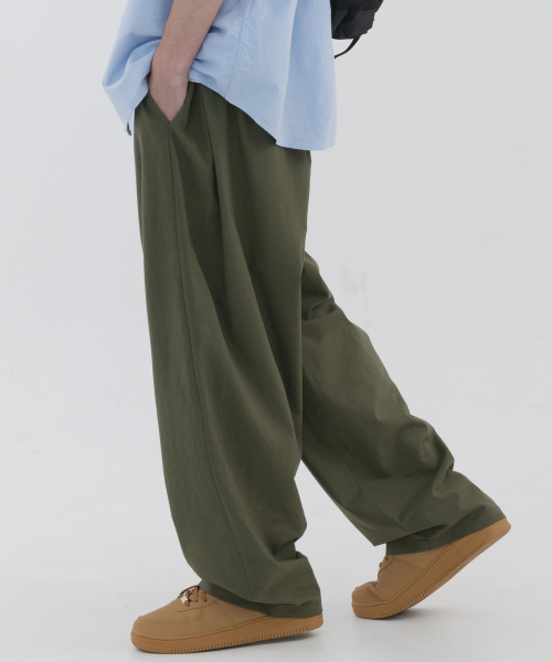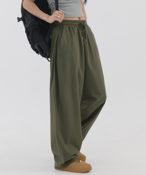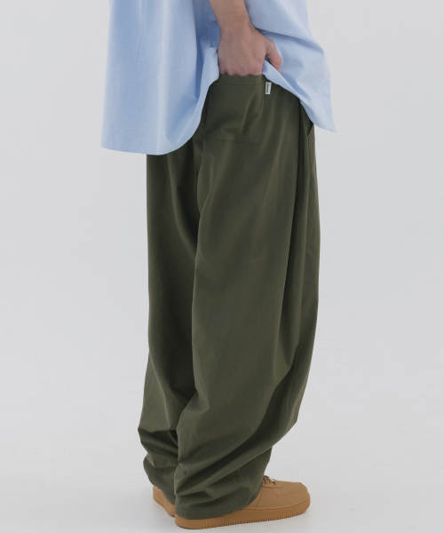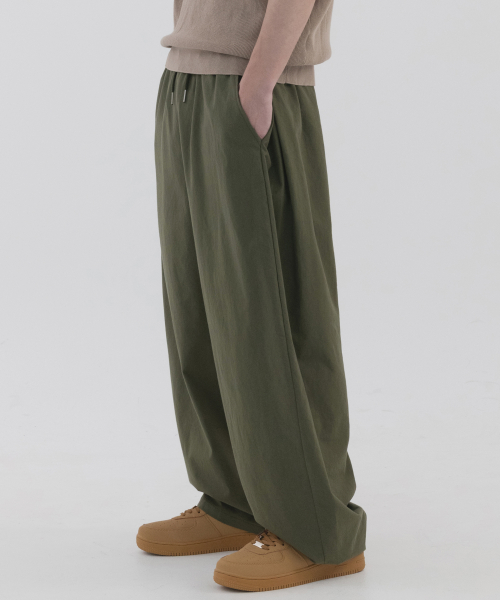 린넨 라이크 옆주름 벌룬 팬츠 (카키)