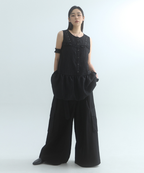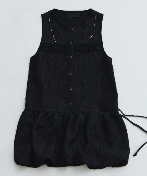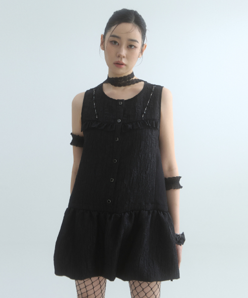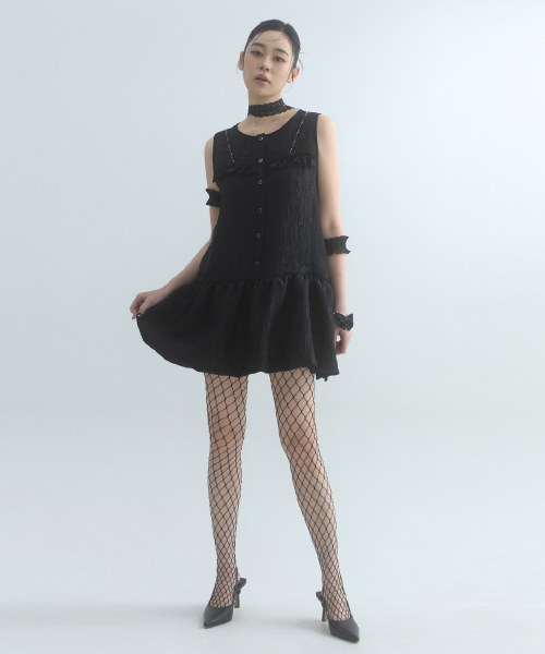 Veil Shirring Volume Dress-BlackVeil Shirring Volume Dress-Black