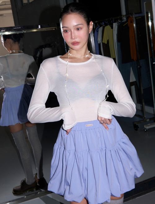 - 비침 있는 소재감으로 원단 자체만으로도 포인트 연출 가능