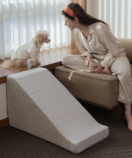 강아지 3단 높이조절 커브 도자기 2구 식탁세트 버터옐로우