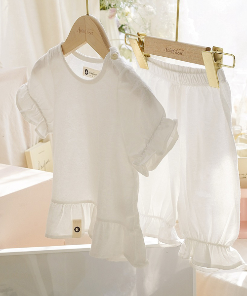 시원한 공간에서의 쪼꼬미의 홈웨어 - 아기 상하세트