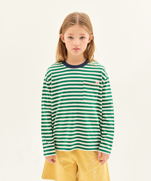비컨 스트라이프 롱 슬리브 티셔츠_그린