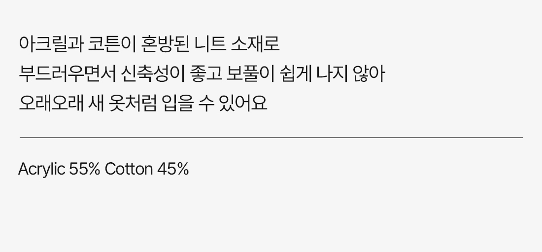 - 니트 소재 특성상 미지근한 물에 울샴프로 손빨래 하여 주십시오.