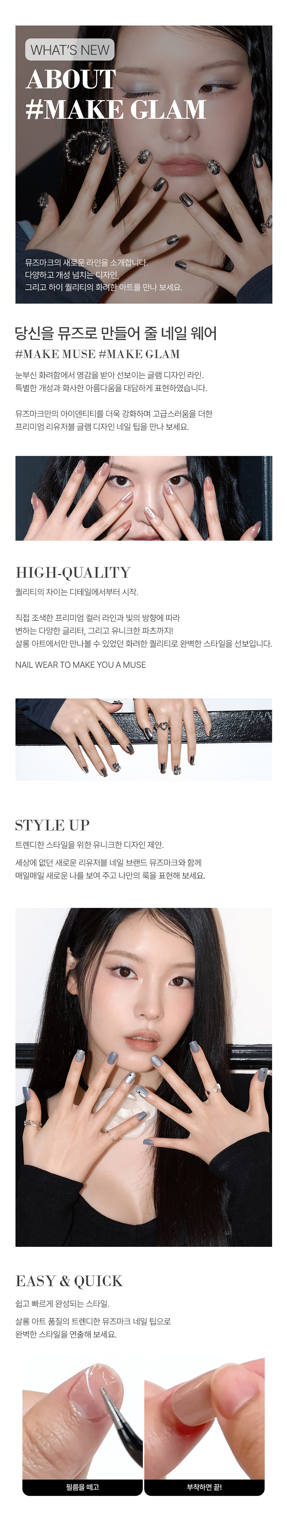 뮤즈마크(MUZMAK)는 재사용이 가능한 프리미엄 리유저블 네일 팁 브랜드입니다. 뮤즈들의 편하고 친근한 일상을 담아 다양하고 새로운 콘셉트와 룩을 네일 웨어로 전달합니다.