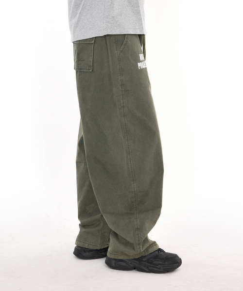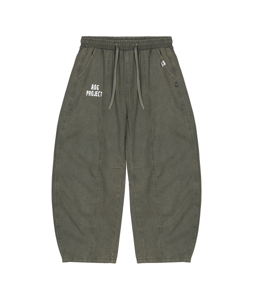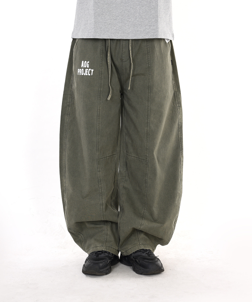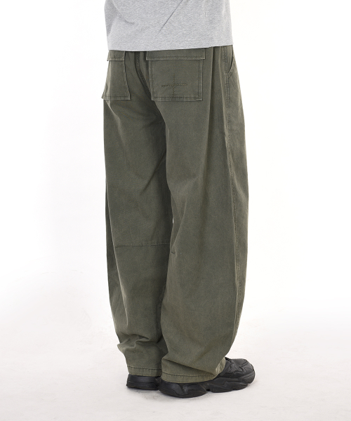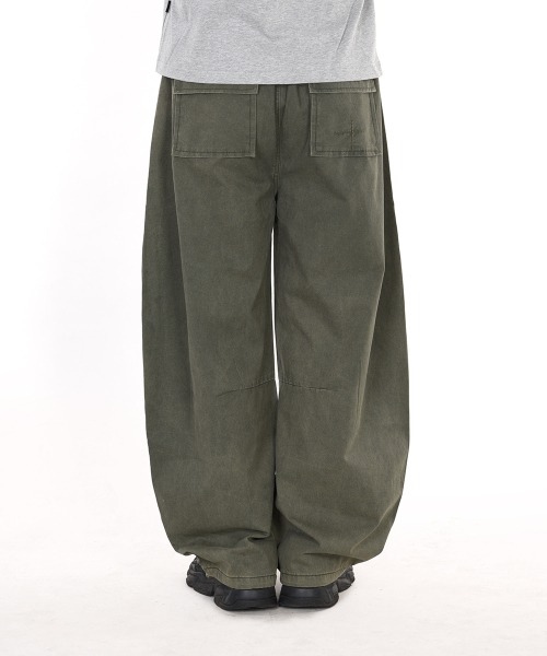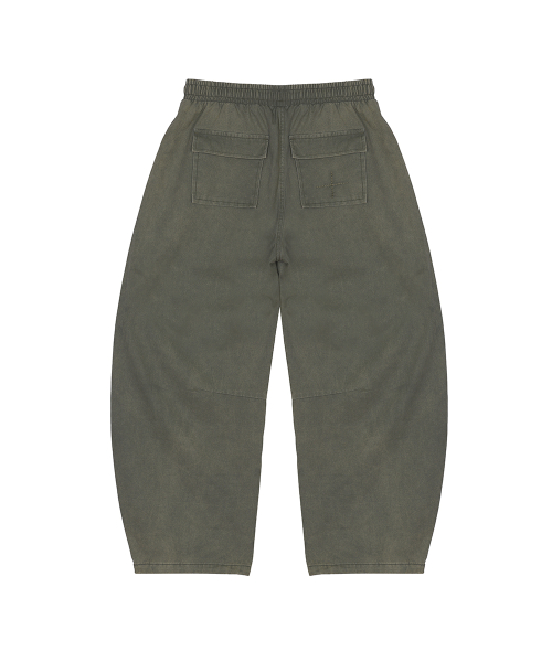 - 가먼트 다이 기법으로 워싱 제작된 커브드 배기 핏 팬츠