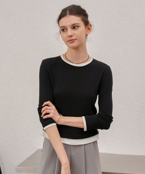 배색셔링레이어드티셔츠 (YZTS2511025)
