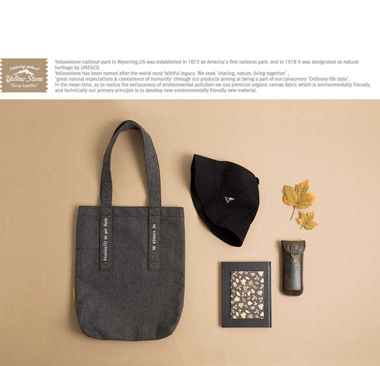 YELLOWSTONE(옐로우스톤)은 1892년, 미국 최초 국립공언으로 지정, 1978년 유네스코 자연유산으로 지정된 와이오밍 주에 속한 Yellowstone의 명칭으로부터 명명되었스며, '위대한 자연과 인간의 공존'이라는 의미를 부여한 , 'Sharing Nature, Living Together'라는 슬로건 아래, '네이처,어드벤처,빈티지;라는 테마와 함께 'Ordinary Life Style'을 지향합니다. 그리고 동시에 자연 환경 보존, 환경 오염에 심각성을 널리 알리고 개선하는데 동참하고자 친환경 최상금 Organic Canvas Fabric 중심으로 가급적 자연에 유해되지 않는 소재를 개발 및 사용하여 가방을 생산하고 있으며, 현재에도 그리고 앞으로도 늘 신소재 개발에 주안을 둘 것입니다.