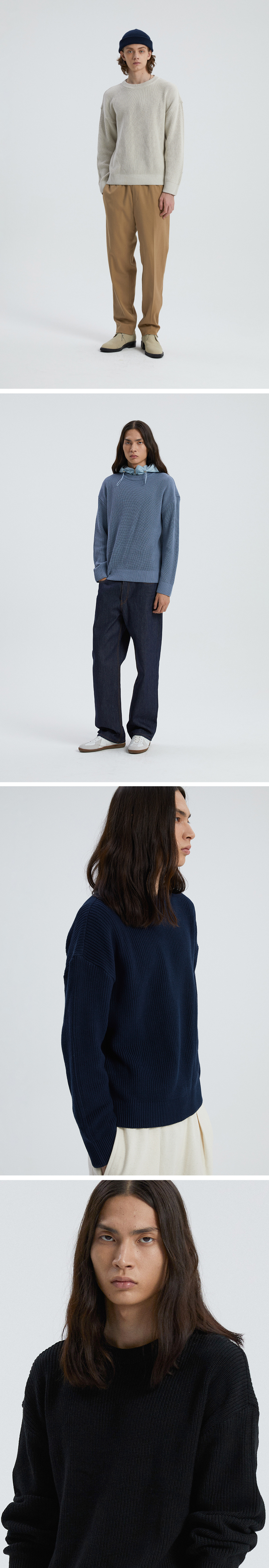 소프트코튼 드랍숄더 와플 니트 NAVY