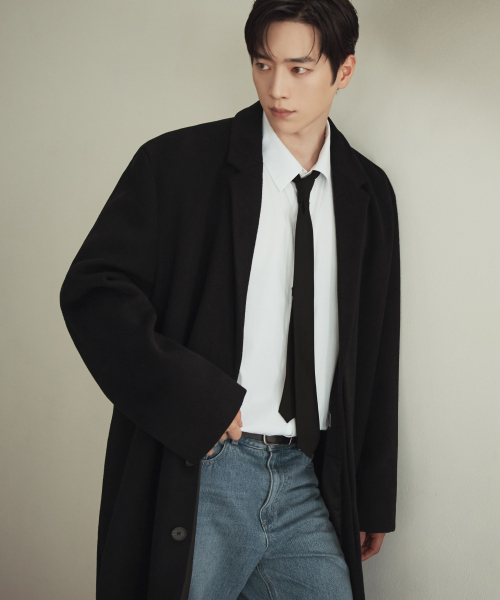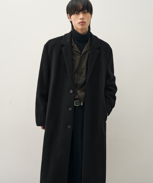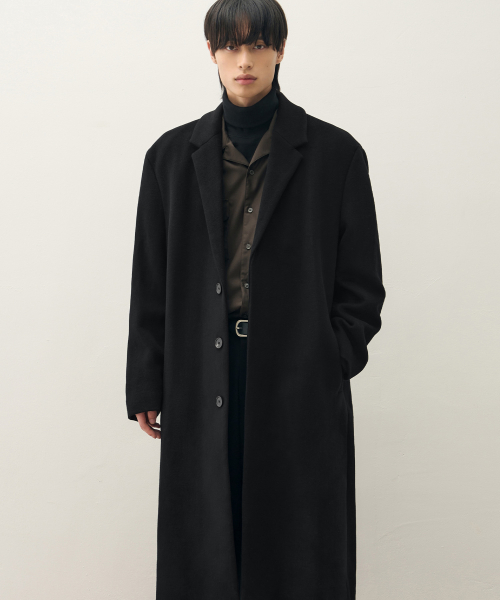 [이도현 PICK] 캐시미어 블렌드 대디 숄더 싱글 롱 코트 [블랙]
