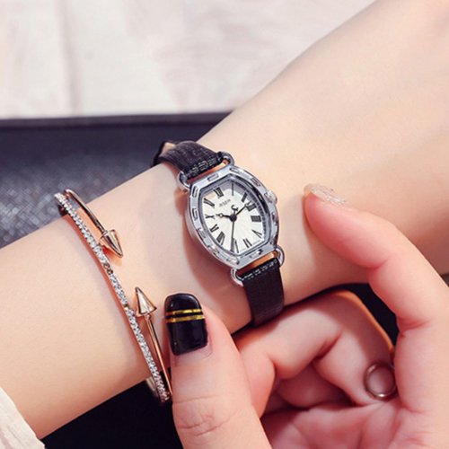 저소음 스퀘어 가죽 메탈 여성손목시계 사각케이스 쇼핑백증정