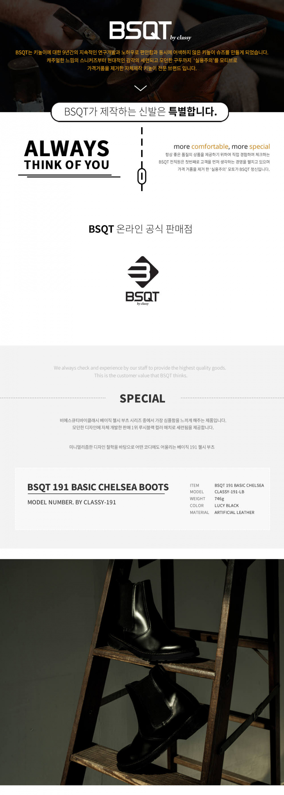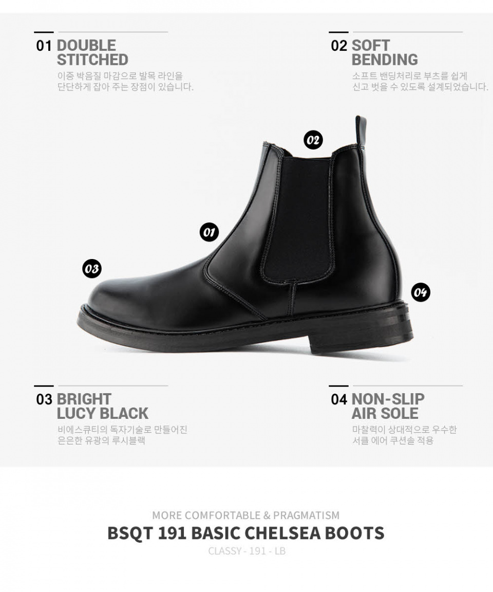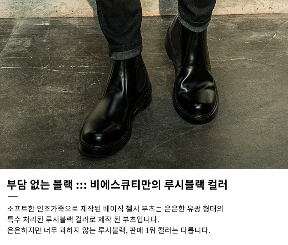 191 베이직 레더 키높이 첼시 부츠 루시블랙