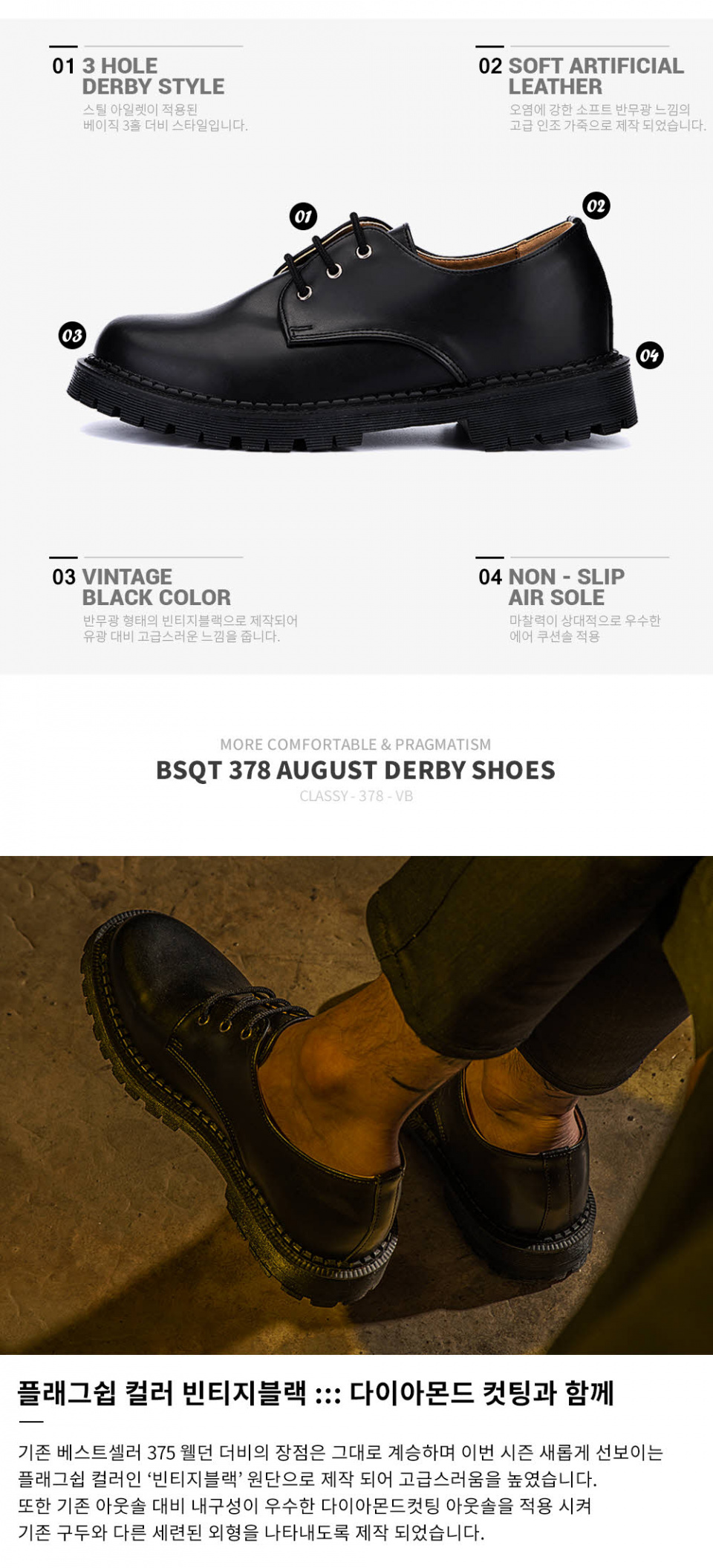 378 어거스트 3홀 더비 구두 빈티지블랙