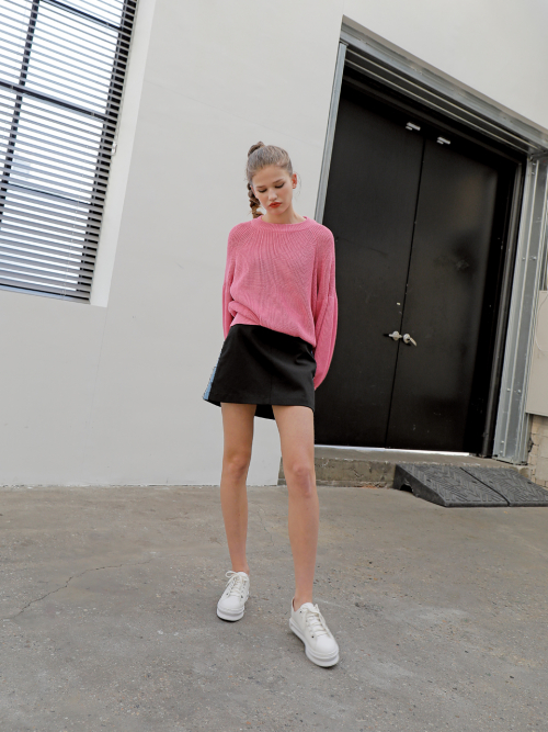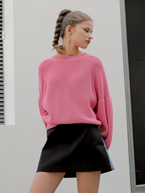 래글런 디자인의 니트 탑입니다. 소매 부분의 풍성한 퍼프가 독특한 아이템입니다. 간절기에 착용하기 좋은 데일리 아이템으로 핑크, 옐로우, 두 가지 색상으로 출시되었습니다. | |