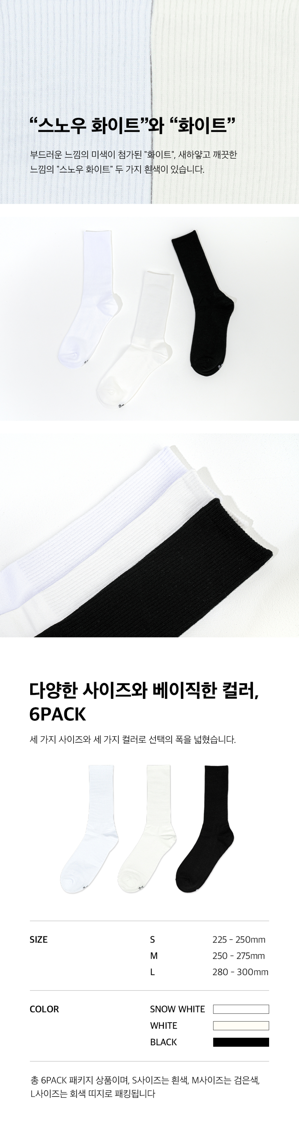 [6PACK] 모노 애슬레틱 삭스 _ 화이트/블랙/스노우 화이트