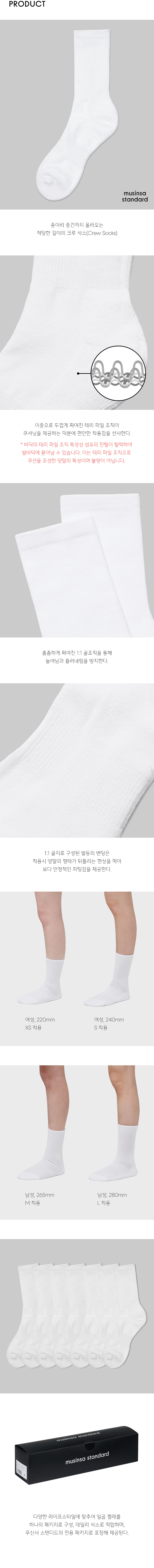 라이트웨이트 크루 삭스 7팩 [화이트]