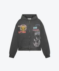 [UNISEX] OVERSIZED SCRAPBOOK ZIP-UP HOODIE (CHARCOAL)