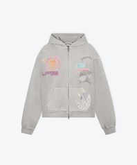 [UNISEX] OVERSIZED SCRAPBOOK ZIP-UP HOODIE (GREY)