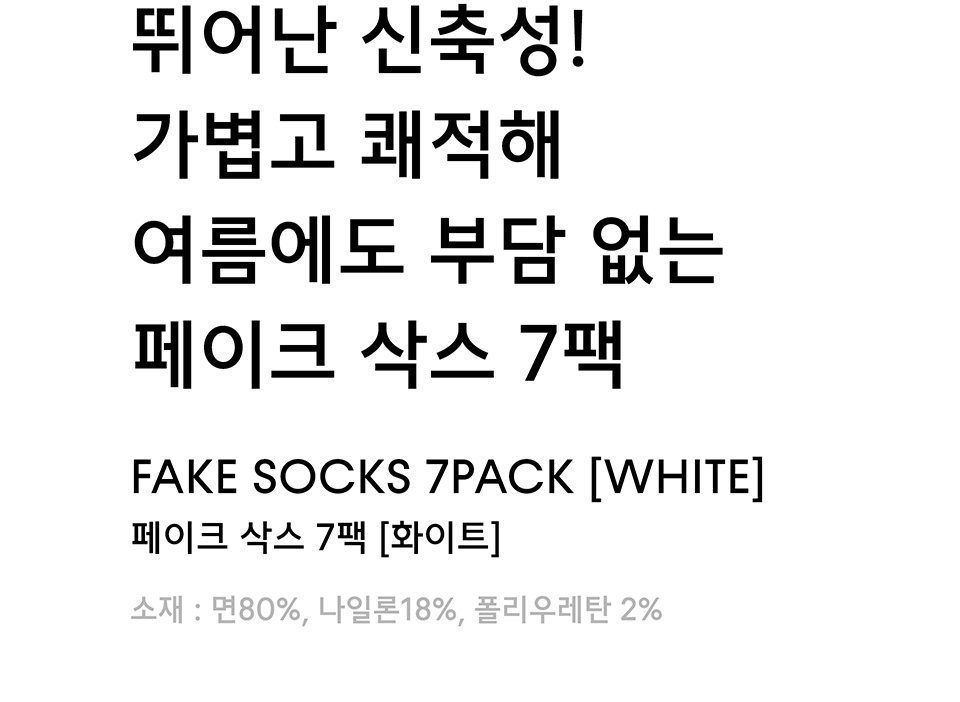 라이트웨이트 크루 삭스 7팩 [화이트]