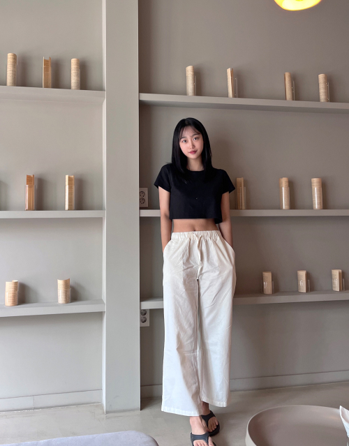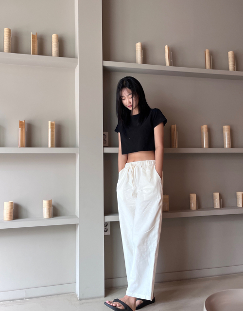 와이드 이지 밴딩 크롭 슬랙스 [블랙]