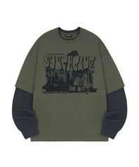 유스클럽 그래픽 레이어드 오버핏 롱 슬리브 - KHAKI
