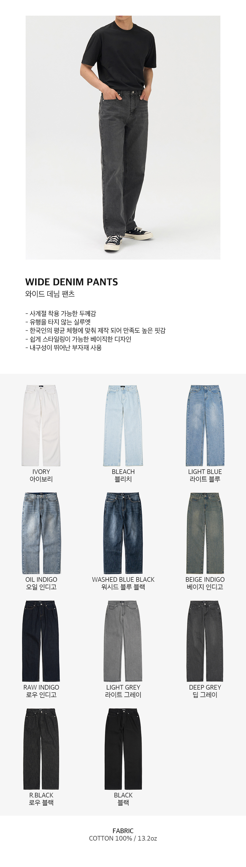 와이드 데님 팬츠 (DEEP GREY)
