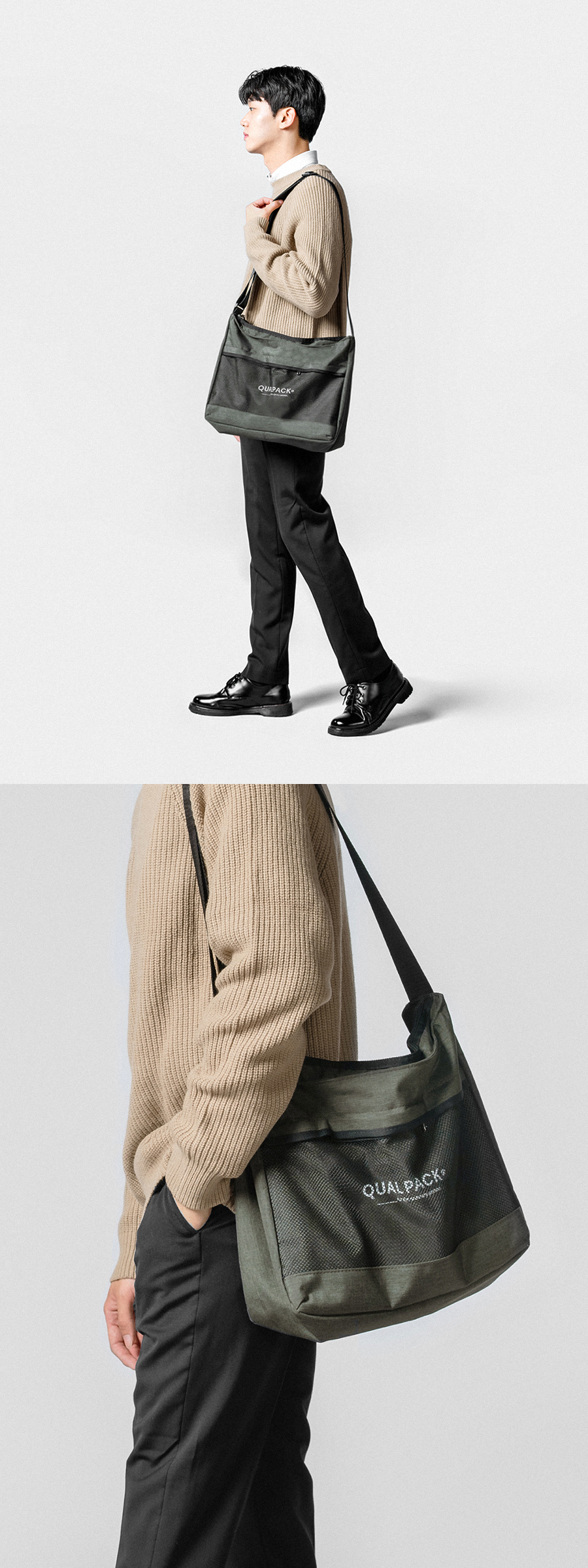메쉬포켓 크로스백 QC3012 카키