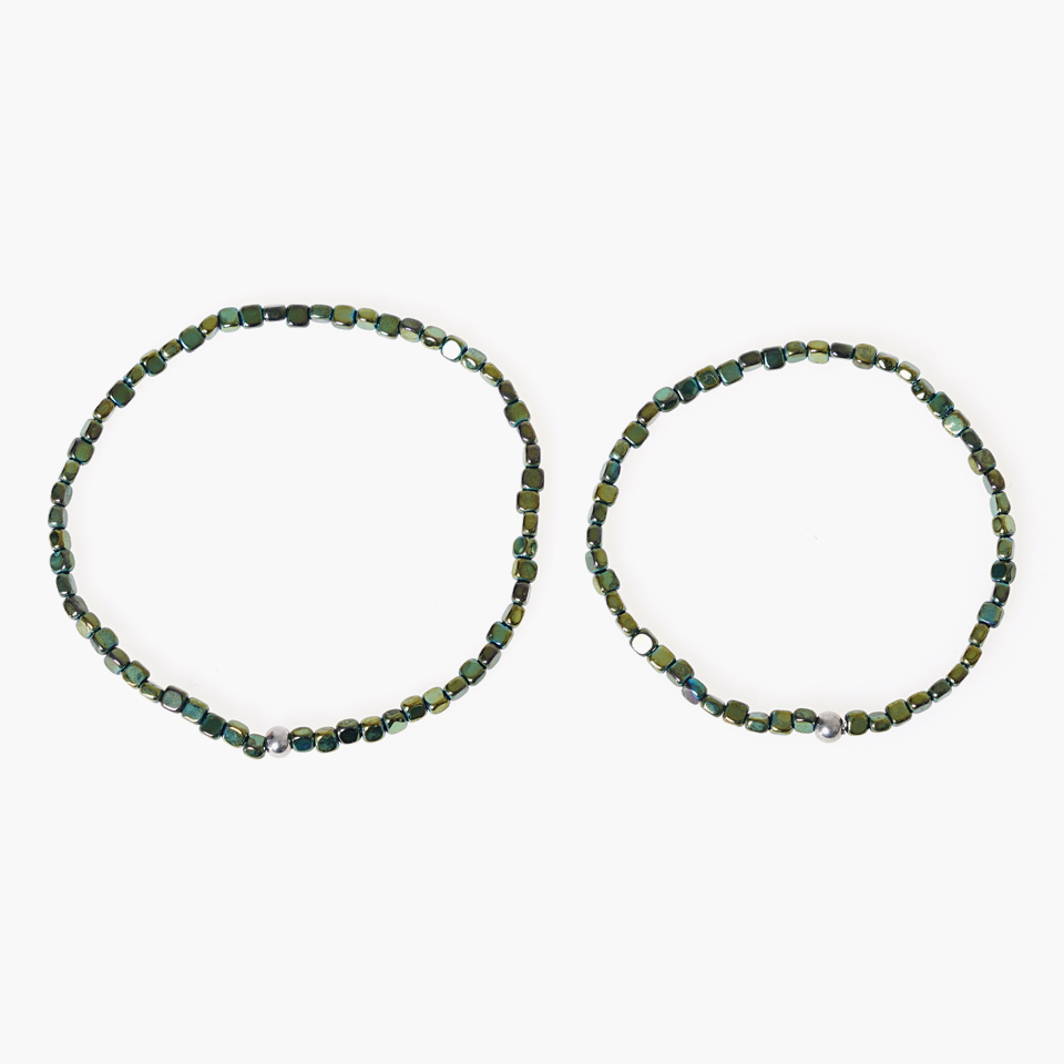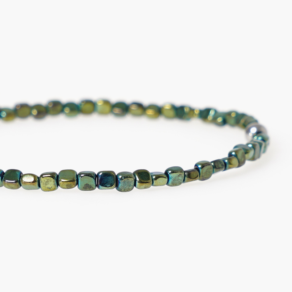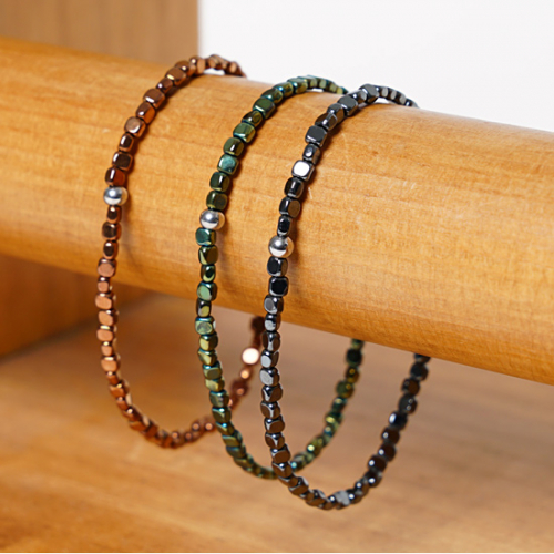 슬림한 골드 헤마타이트를 이용해 제작된 원석팔찌입니다.