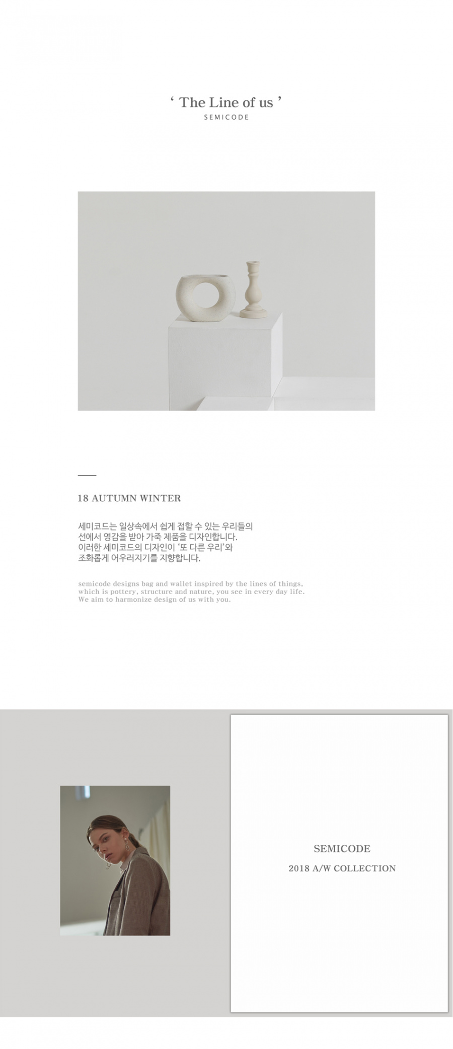 SEMICODE(세미코드)는 개개인이 가지고 있는 아름다움에서 출발하여 가방과 지갑을 디자인함과 동시에 어디에서나 누구에게나 잘 녹아들고 그 사람만의 개성을 표출할 수 있는 디자인을 선보이는 브랜드입니다.