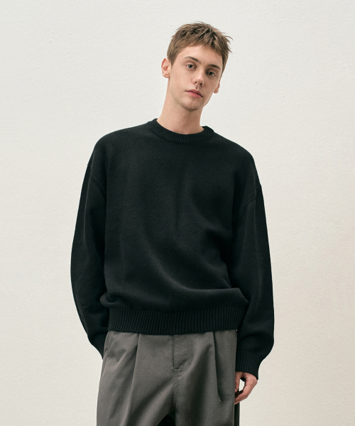 [리뉴얼ver.] 소프트 코튼 크루넥 니트 블랙 COOSKT008BLACK